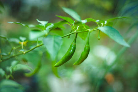 Chilli peppers or green chilies in farm gardening is vegetable use for ingredient of Thai food