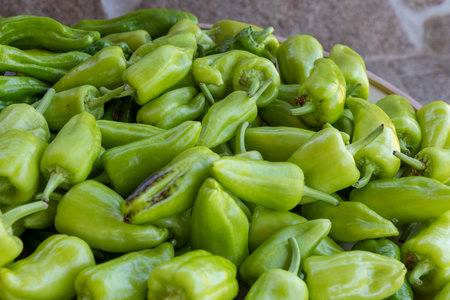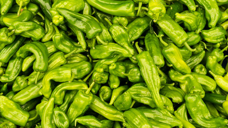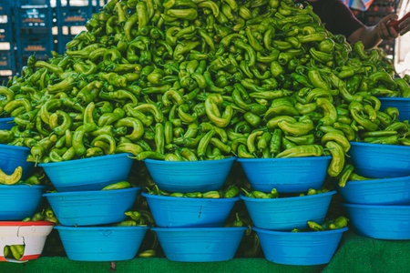 green peppers on the stall in bazaar antalya turkey