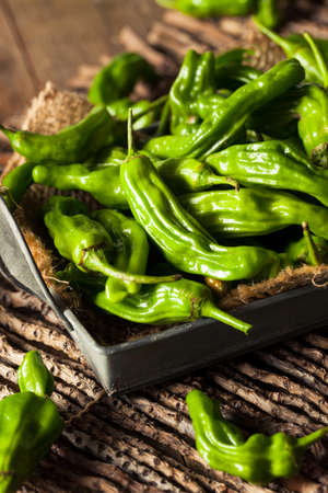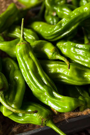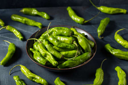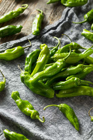 Raw Organic Green Shashito Peppers Ready to Cook With
