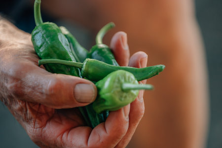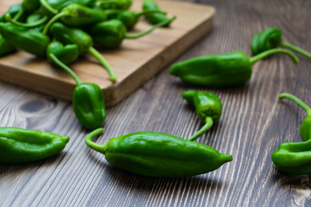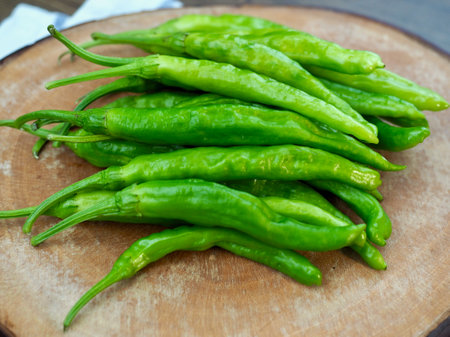 Organic green peppers on a table