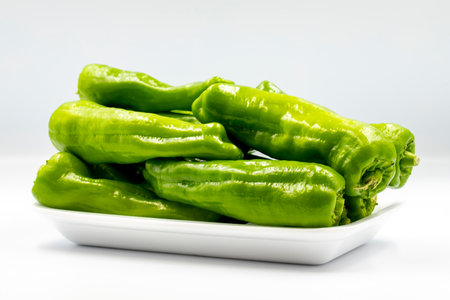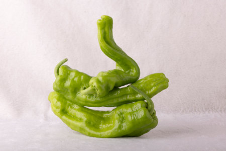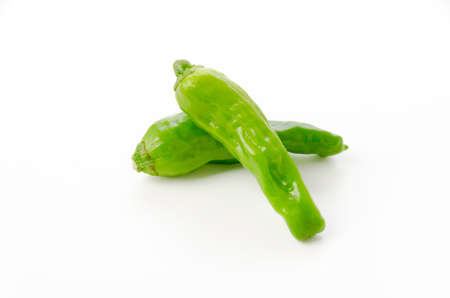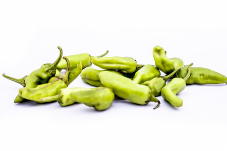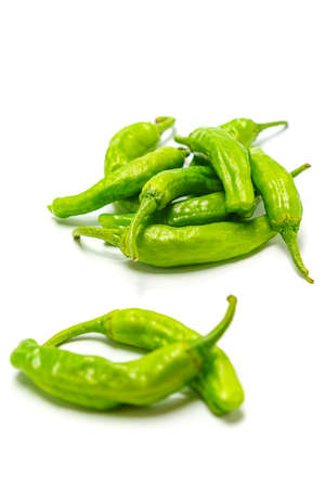 Padron peppers isolated on white background. Variety of pepper typical of Galicia, in Spain.