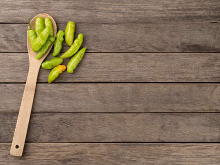Fresh Chili for Cooking on Wooden Spoon