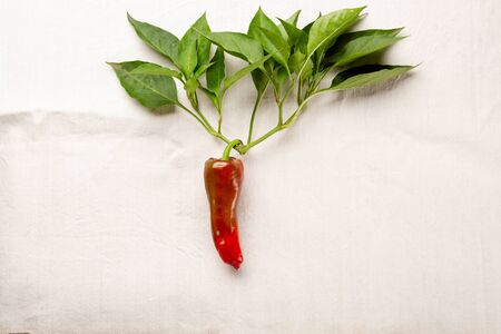 Fresh red paprika top view on linen