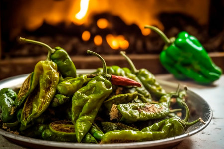 An AI generated illustration of dried green peppers in the steel plate