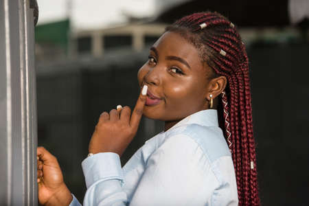 Close up portrait of a stylish young black woman