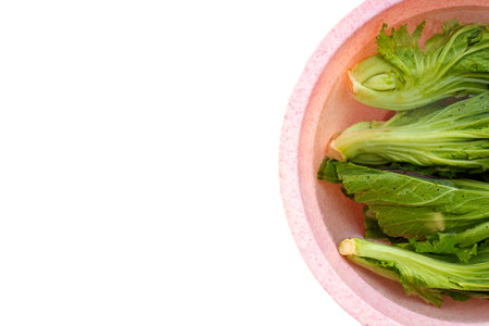 Sawi Pagoda (Tatsoi) served on rattan basket, food ingredient