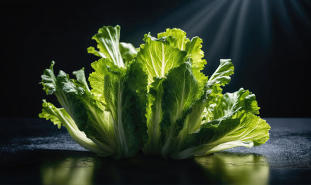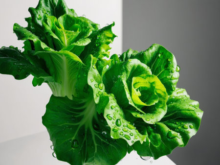 AI Generated. Vibrant green lettuce leaves are glistening with fresh water drops