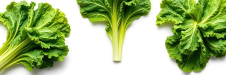 Fresh green lettuce leaves arranged on a white background perfect for healthy meals and salads