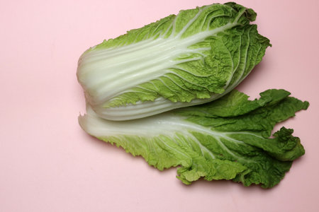 Chinese cabbage on a pink background. Vegetables for healthy eating.
