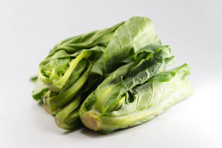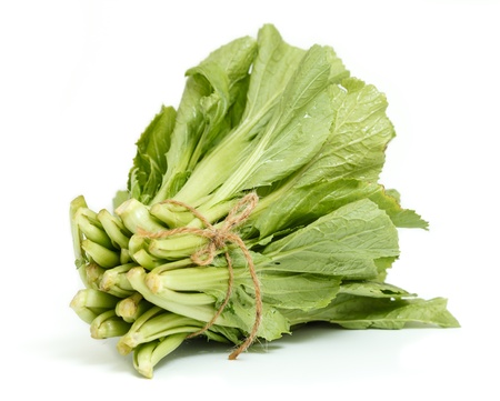 Choy Sum on white background. Copy space