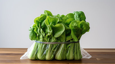 Generative AI : Choy Sum on wooden background