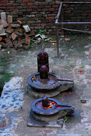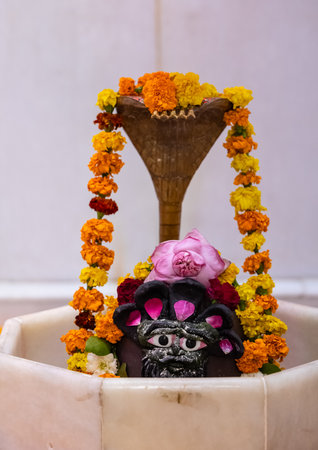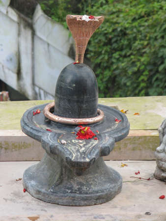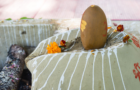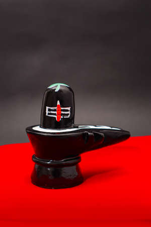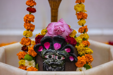 Shivling or shiv lingam decorated with colours and flowers to worship lord shiv. Selective focus.