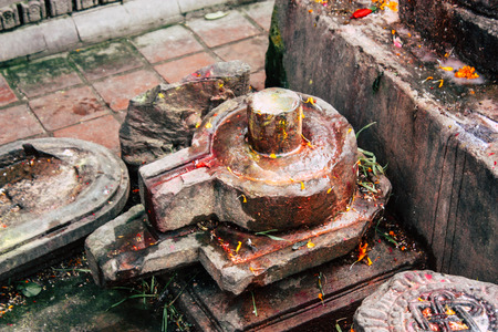 Kathmandu Nepal August 27, 2018 Closeup of a place of worship inside the Pashupatinath temple in the morning