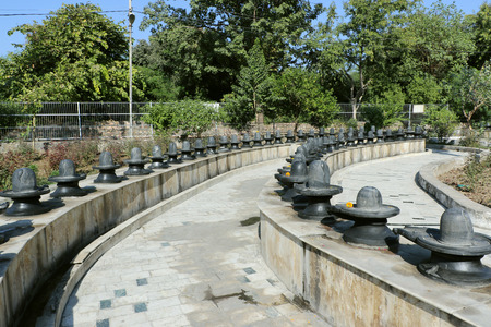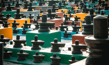 Group of idols(known as lingams) of god Shiva in a temple in Kolar, India