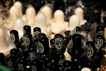 Close up shot of the handmade souvenirs items, are being sold in the handicraft shop in the Uttarakhand, India with selective focus. Brass made items for sale.