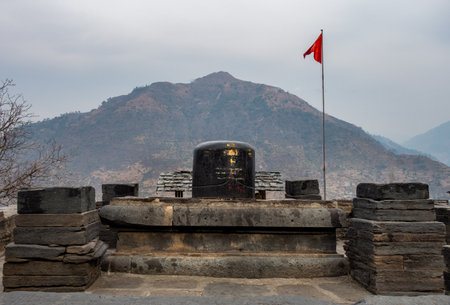 Feb.18th 2024, Uttarakhand India. Big Shiva Linga Sculpture: Lakhamandal Temple, Himalayan Mountains Background