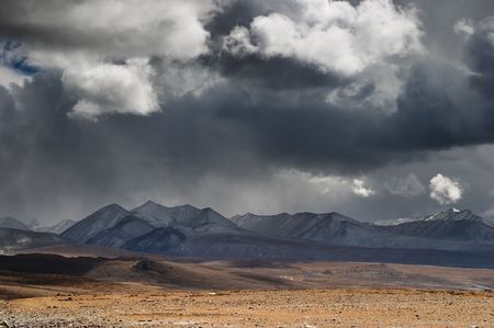 Tajikistan. Dramatic evening sky over the Pamir highway in the area of the high-altitude lake Bulunkul.