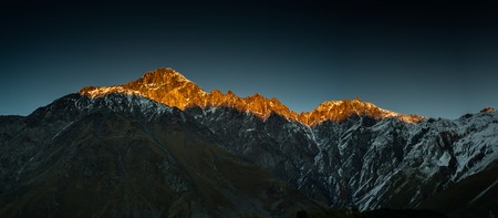 Dawn over the majestic mountain Dykh-Tau (5204 m) of the Northern massif of the Main Caucasian ridge