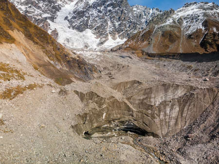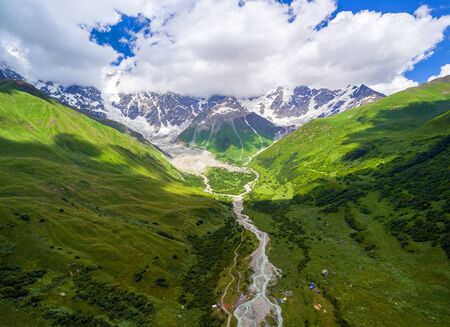 Aerial view of Shkhara Glacier. Upper Svaneti, Georgia. Caucasus mountains