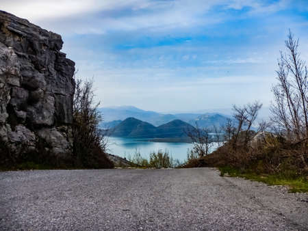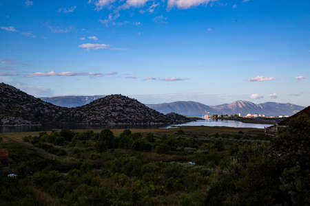 Nature views of Lake Skadar in Montenegro. Green mountains panorama