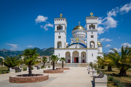 Palm pedestrian alley way to Cathedral of Saint Jovan Vladimir. Bar, Montenegro.