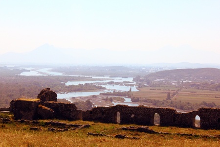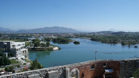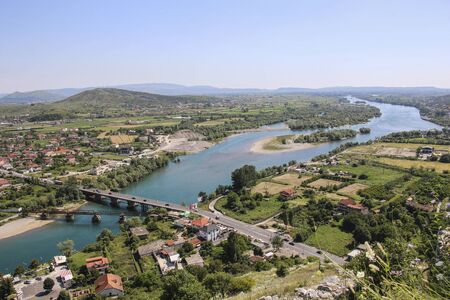 Views of the river from the walls of Rozafa Castle and its citadel in the city of Shkoder. Albania
