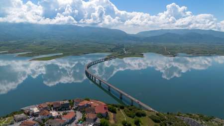 Neraida bridge or Servia Bridge on Polyfytos lake in Kozani.