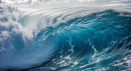 Majestic ocean wave with turquoise hues, powerful flow. Nature and energy concept