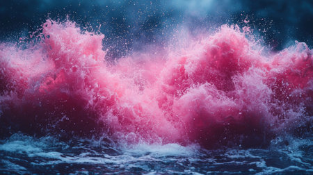 A mesmerizing capture of pink and blue ocean waves in motion, showcasing dynamic energy and beauty.
