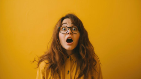 Shocked woman with open mouth and open mouth. shocked girl with glasses. surprise and amazed expression, surprised.