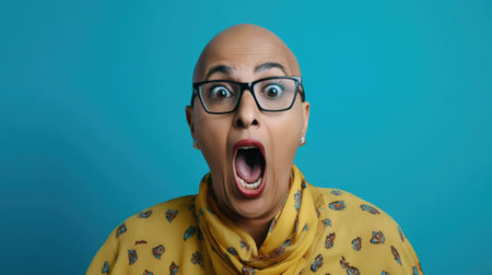 A close-up portrait of a surprised person with wide eyes and an open mouth, capturing genuine astonishment and emotion. The intense expression evokes curiosity and engagement.