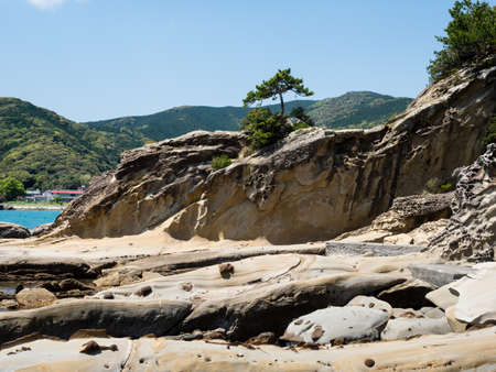 Sandstone rock formations at Tatsukushi coast - a natural scenic landmark near Tosashimizu, Kochi prefecture, Japan