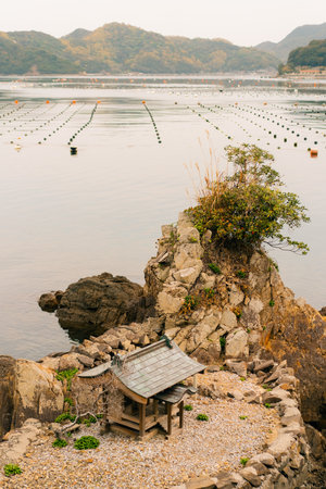 Beautiful view on cloudy sky and pearl farms from Mount Misen at Miyajima island in Hiroshima Japan