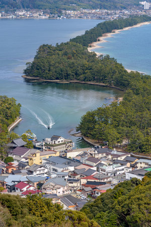 Amanohashidate on the Sea of Japan in north Kyoto prefecture considered as one of the top three scenic views in Japan