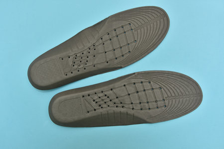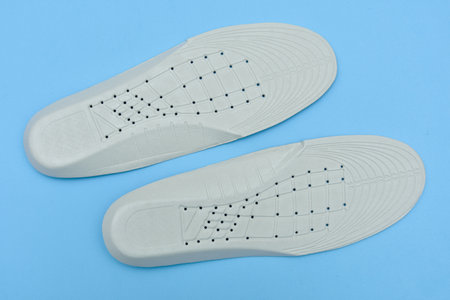 Shoe inserts on a white background. Comfortable orthopedic shoe accessories. Photo taken with flash.