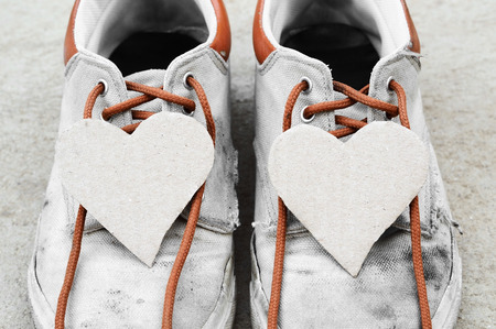 couple paper heart on old dirty sneaker