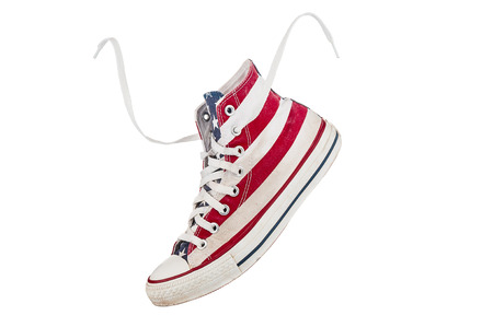 Classic retro sneaker with untied shoelaces. Top view.