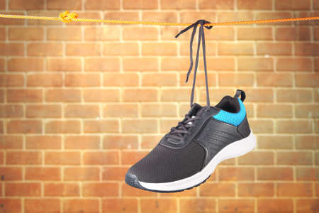 Men's Sport shoes hanging on rope