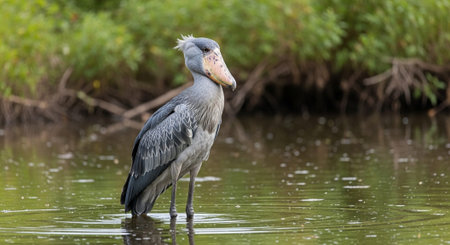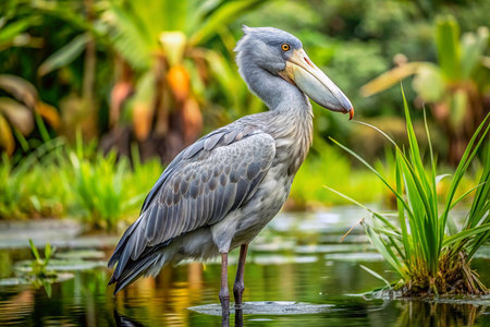 Shoebill, standing tall in its vibrant natural habitat Generative AI