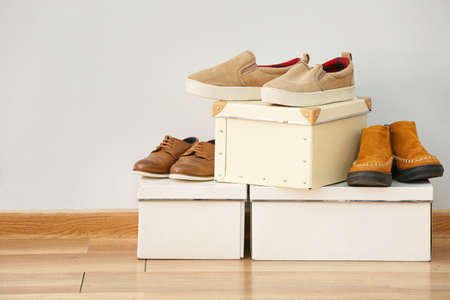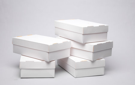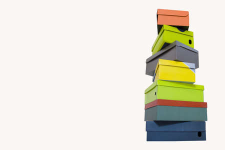 stack of colorful blocks, pyramid of boxes for shoes on a white background