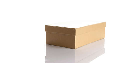 Blue shoe box on white background. Paper box for shoes, electronic device and other products.