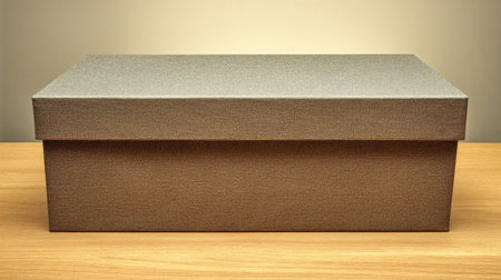 A premium minimalist shoe box in dark gray color with no logos, no text, and no corporate identity. AI-generated item