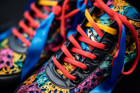 Multi colored sports shoe untied on black background generated by artificial intelligence