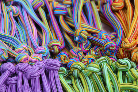 A pile of colorful rope bracelets, AI