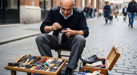 Shoemaker in urban shop highlighting the demand for shoe repair