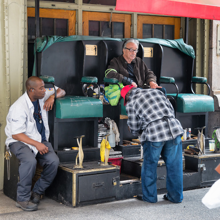 NEW YORK CITY - JUNE 17, 2015: Shoeshiner working in the center of New York