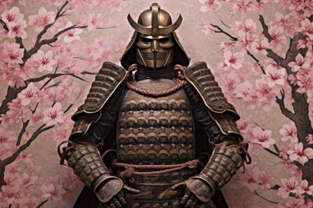 Traditional Samurai Warrior in Armor with Cherry Blossoms Background - Japanese Cultural Heritage.