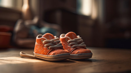 Kid shoes on wooden floor