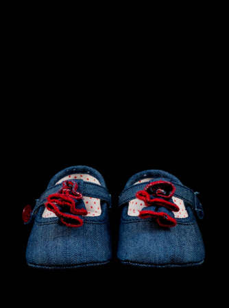 baby shoes jeans on a black background
