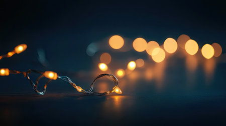 A close-up view of warm string lights casting a gentle glow against a soft blue background. Perfect for creating a cozy atmosphere for home decor, gatherings, or celebrations.